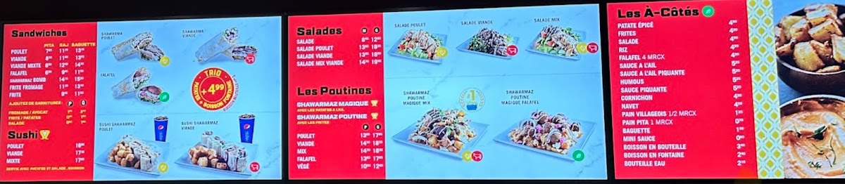 Welcome to Shawarmaz Pointe-Claire, where flavor meets tradition in every bite. Located in the heart of Pointe-Claire, this vibrant eatery specializes in authentic shawarma dishes that leave a lasting impression. The menu features expertly seasoned plates, including Chicken Shawarma complemented by pomegranate molasses, garlic potatoes, and fresh salads. Don't miss their Meat Shawarma, a mouthwatering blend of beef and lamb served with rice and crispy potatoes.